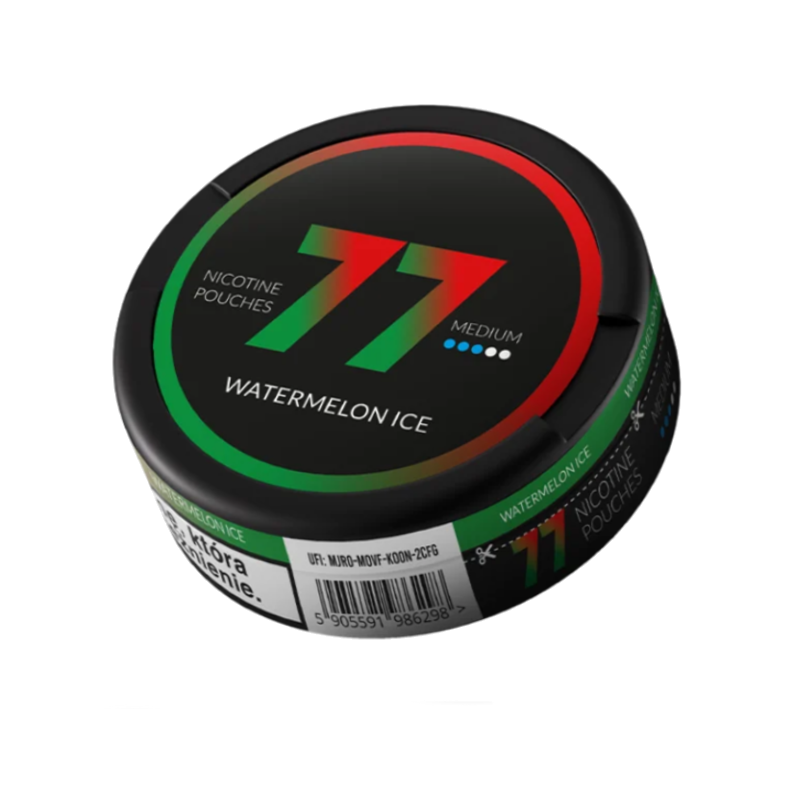 77 Watermelon Ice Flavour Nic Pouches offer a juicy burst of sweet, refreshing watermelon paired with an icy finish. Smooth, cooling, and perfectly balanced, these pouches deliver a deliciously fruity flavour with a crisp nic kick. Ideal for those who enjoy a fresh twist on a summer classic.